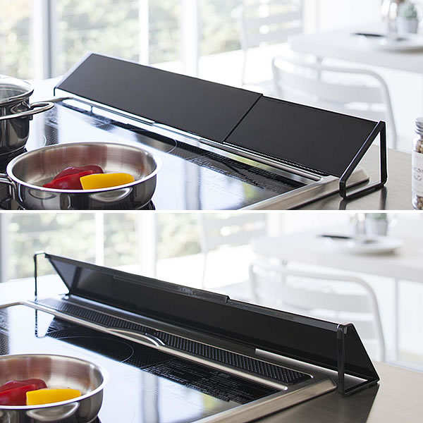 そこで、排気口カバーを使用すれば、グリルや排気口に置くだけで飛び散る油や調理汚れをガードできます!排気口カバーはスライド式に伸縮するので、幅約43〜80cmまでのビルトインガスコンロ、IHクッキングヒーターに対応します。