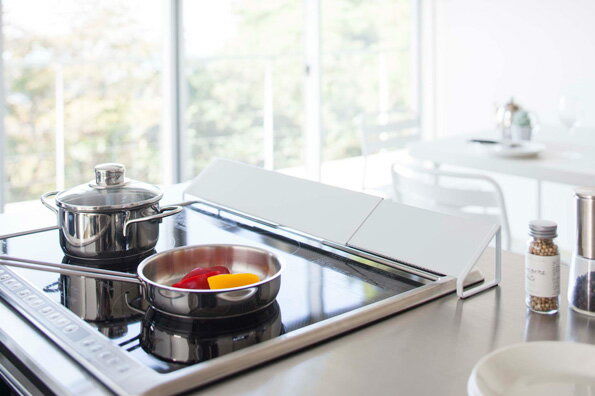 コンロ奥のアイテムや壁が汚れるのも防ぎます。