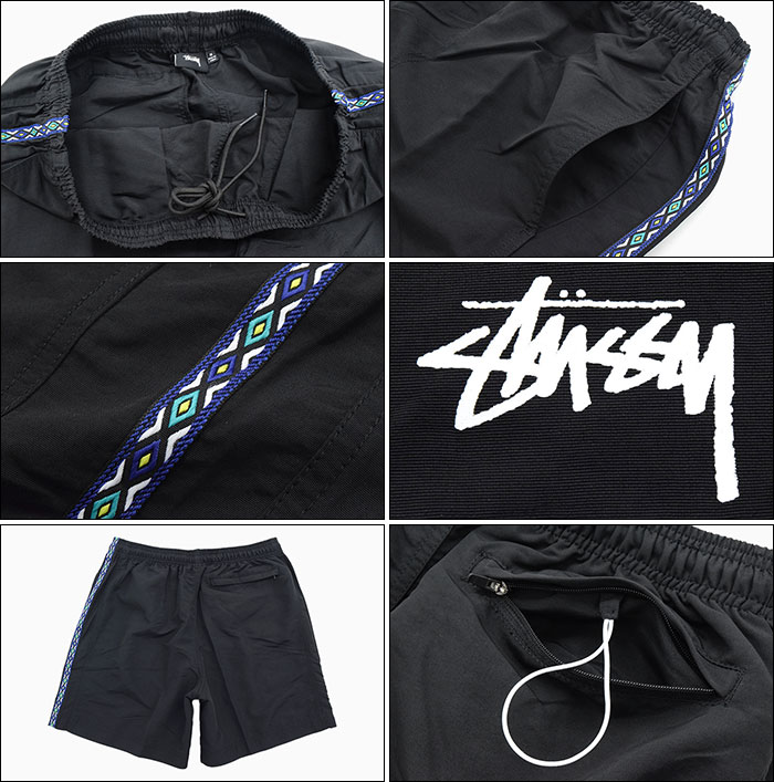 アイテム説明 40周年に向け今なお進化を続けるストリートの王者「ステューシー」! ステューシー(STUSSY)2019Springより春の新作アイテムが待望のリリース! 両サイドに配したエスニックテイストのジャガードテープがポイントのナイロンショーツ! 程よい光沢のナイロンBODY、さりげなく裾に配置されたお馴染みのストックロゴ、そして、絶妙なショート丈に仕上げたトレンド感のあるシルエットも見逃せない! ポケットは合計3箇所。