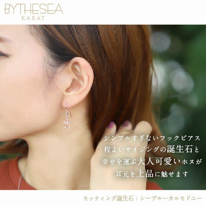 ハワイアンジュエリー ピアス 幸せ運ぶホヌピアス フックタイプ 誕生石選べます K14ピンクGOLD パーツ レディース 誕生石 K14ゴールド 彼女 妻 女性 女友達 プレゼント 記念日 BY THE SEA バイザシー ミリオンベル GE533R