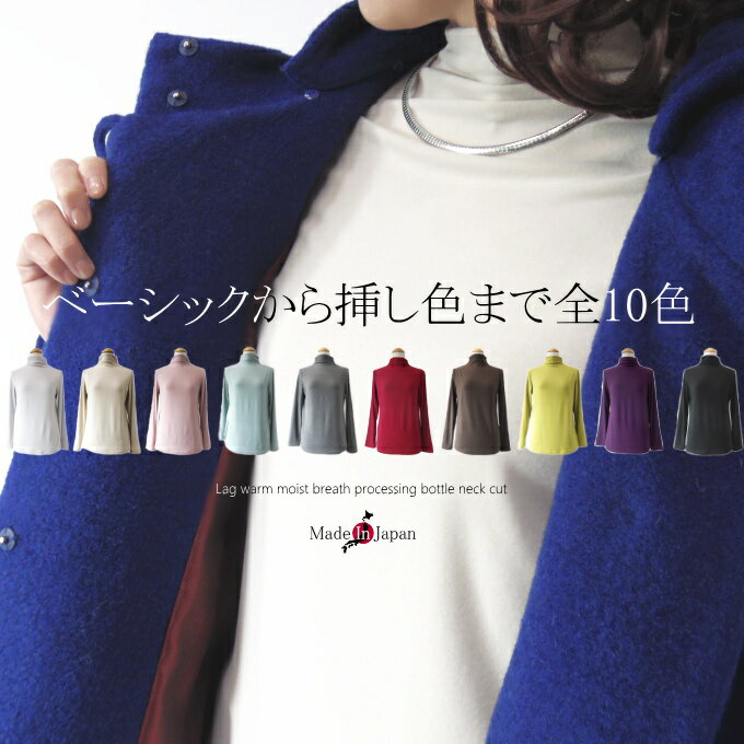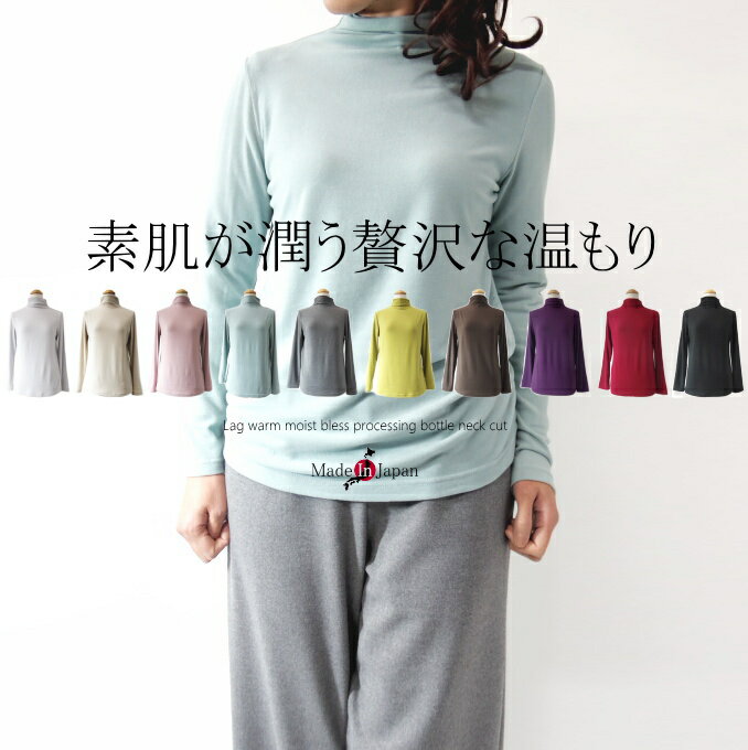 【日本製】ラグウォームモイストブレス加工ボトルネックカットソー ミセス ファッション 50 代 チュニック アラフォー 40代 60代 70代 秋冬 ウォーム素材 母の日 プレゼント