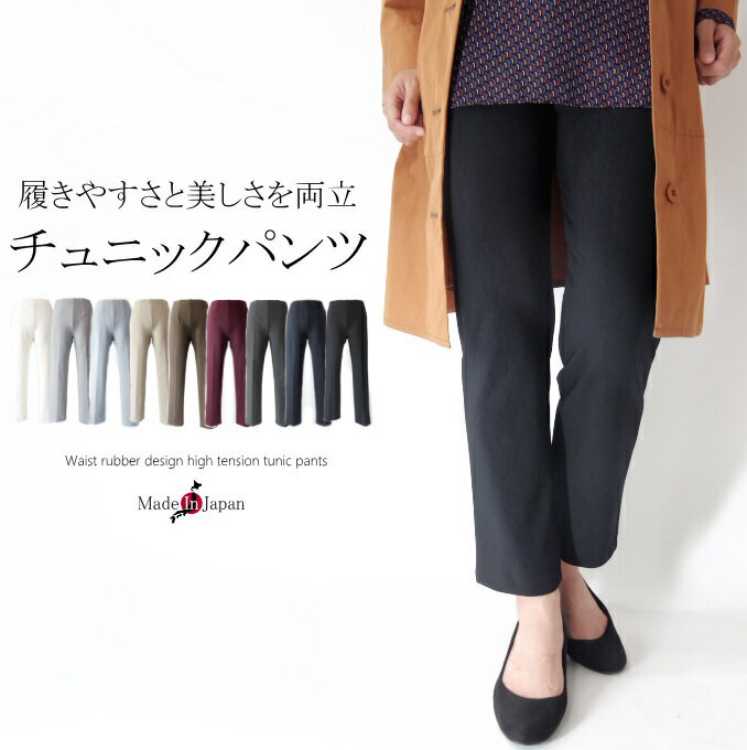 【日本製】ハイテンションチュニックパンツ ウエストゴムデザイン クロップドパンツ 50代 ミセス ファッション 40 代 50 代 60 代 70 代 アラフォー 春 夏 秋 母の日 プレゼント